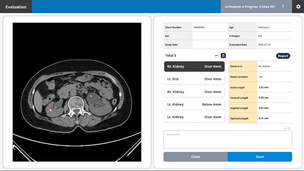 기존에는 비뇨의학과 전문의가 요로결석 환자 CT 이미지를 한 장씩 판독해야 하는 만큼 시간이 소요되고 작은 결석을 놓칠 가능성도 있었다. 반면 ‘URO dot AI’는 5분 이내에 결과를 도출해 환자 진료의 속도와 정확성을 동시에 높인다.